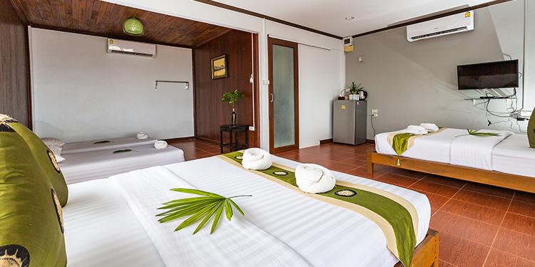 ห้องพักอยู่ติดชายหาด หน้าบ้านมีระเบียงนั่งชมทะเล สามารถพักได้ 6 ท่าน มี 2 เตียงใหญ่ 2 เบาะนอน 1 ห้องน้ำ