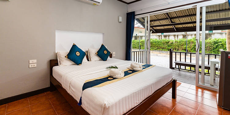 ห้องพักอยู่ติดชายหาด ขนาดมาตรฐาน สามารถพักได้ 2 ท่าน มี 1 เตียงใหญ่ 1 ห้องน้ำ และมีระเบียงนั่งเล่นหน้าบ้าน